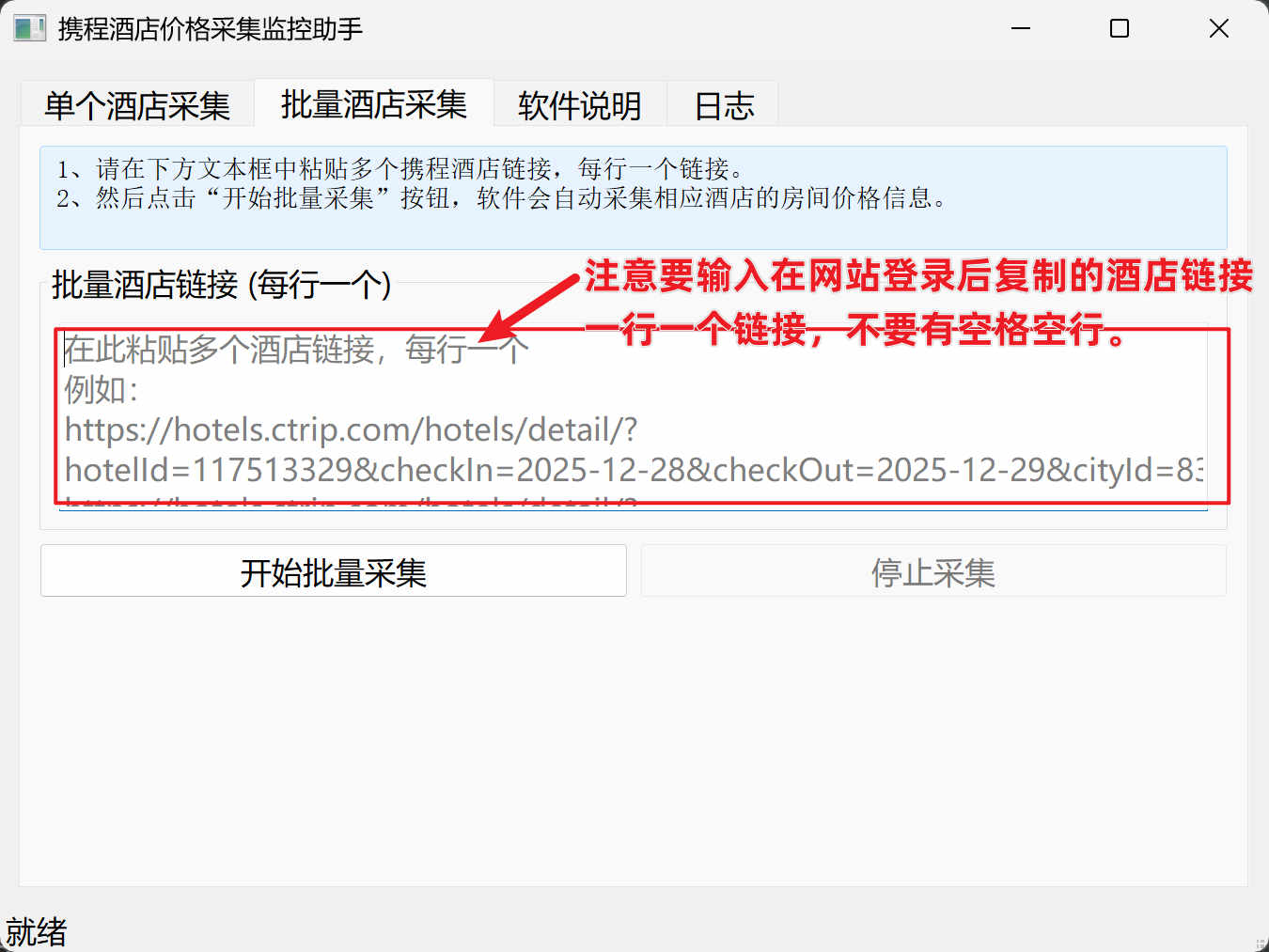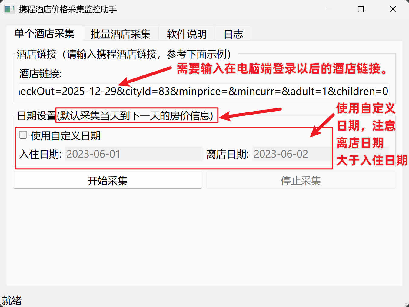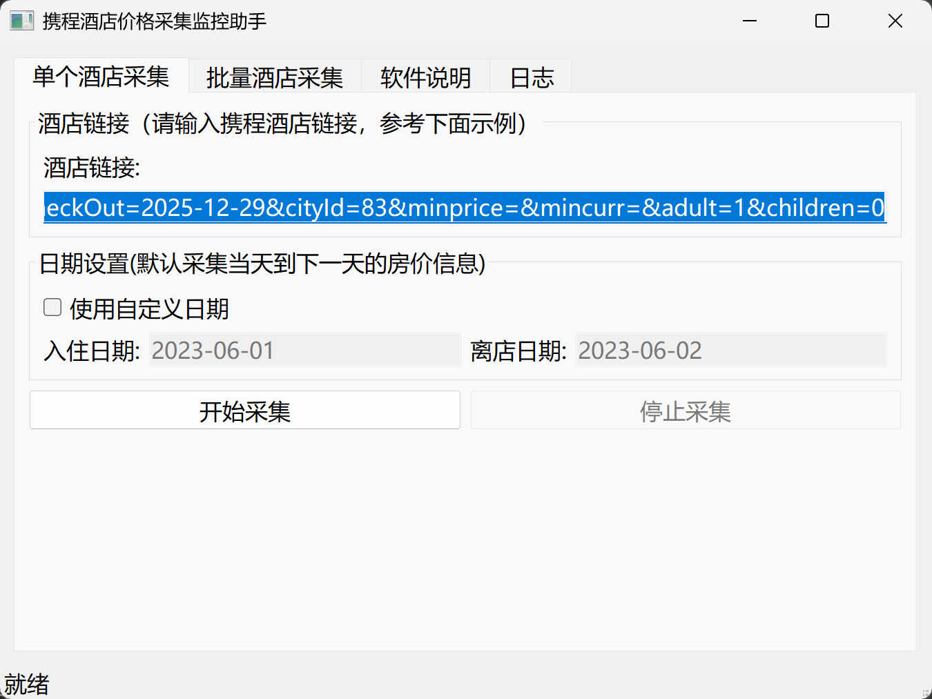 携程酒店价格采集助手 软件功能:通过输入携程酒店链接,自动采集目标酒店的房间价格信息。